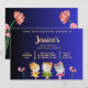C3llsD Fur Baby presents Gold Blue Ballerina Cat Kids Birthday Party Invitation Flat Card with cute three ballerina kittens and pink flowers. This particular design theme is available in other various birthday party related products to enable parents to held the entire birthday party under the same theme. Perfect for children, mostly girls, who love cat and ballet or ballerina