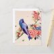 Gold Blue Bird Red Floral Butterfly Glitter Holiday Postcard