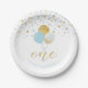 Gold & Blue Confetti Balloons 1st Birthday Party Paper Plate