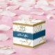 Gold Blue Elegant Script Monogram Wedding Favour Box