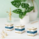 This design features an elegant yet simple arrangement of the bride's and groom's personalised initials in gold script. The blue accents compliment the gold creating a beautiful personalised script monogram design. This blue and gold design is modern yet retains its classic charm with the use of calligraphy script. The combination of colours creates a sophisticated, trendy and chic style. Elegant monogram wedding favour box design with modern elements. The simple setup of the typography gives it a distinct style. Matching wedding invitations and other stationery items are also available. To re-position the initials please click on "personalise this template" then click the bottom option "Want to customise this design even further? Edit using Design Tool"