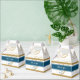This design features an elegant yet simple arrangement of the bride's and groom's personalised initials in gold script. The blue accents compliment the gold creating a beautiful personalised script monogram design. This blue and gold design is modern yet retains its classic charm with the use of calligraphy script. The combination of colours creates a sophisticated, trendy and chic style. Elegant monogram wedding favour box design with modern elements. The simple setup of the typography gives it a distinct style. Matching wedding invitations and other stationery items are also available. To re-position the initials please click on "personalise this template" then click the bottom option "Want to customise this design even further? Edit using Design Tool"