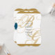 Gold Blue Elegant Script Monogram Wedding Invitation