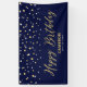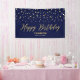 This simple birthday banner design features stylish script lettering "Happy Birthday" with a hexagon confetti background. Perfect party decor for a modern navy blue & gold theme birthday party. More matching invitations and party supplies are available at my shop BaraBomDesign.