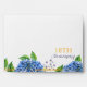 Looking for custom envelopes with return address? The Floral Gold Blue Hydrangea 18th Wedding Anniversary envelope features beautiful watercolor with blue hydrangeas, greenery, and a digital gold effect. It is a beautiful floral idea for a spring or summer anniversary party. You can personalise by selecting "Personalise this template," or if you want to customise this design even further (background colour, font, etc.), please select "Edit using the Design tool."