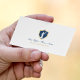 Navy-blue and gold tones lady justice badge on white background. Elegant low-office business card