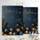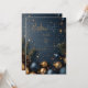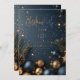 Gold Blue Ornament with Greenery Holiday Christmas Invitation