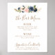 Gold Blue Pink Flowers Wedding Bar Menu Poster