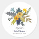 Gold, blue, purple bouquet of summer flowers party classic round sticker