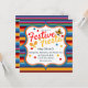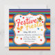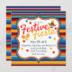 Multicolored serape (or sarape) in reds, gold, and blues decorates this party invitation. There are also maracas, confetti, and a sombrero with a moustache. Great for Cinco de Mayo or for any Mexican-themed event or birthday party.