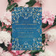 Beautiful personalised wedding invitation design featuring a luxury faux gold jewelled border on a blue velvet background. The text is fully customisable. To change it use the Personalise option. For more changes, such as changes to the font, font colour or text layout, use the Edit design tool option.
