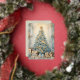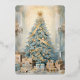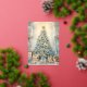 Gold Blue Vintage Christmas Tree Holiday Card