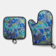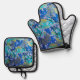 Gold Blue White Japanese Sakura Kimono Floral Oven Mitt & Pot Holder Set