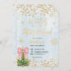 Gold blue Winter Wonderland First Birthday Party Invitation