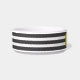 Bone Appetite! The Gold Bone Pet Bowl has classic onyx black and white stripes and in the centre a metallic gold bone. This beautiful ceramic bowl comes in two sizes and has many different trendy coloured stripes to choose from in my store. The gold metallic details are simulated in the artwork.