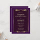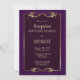 An elegant purple surprise birthday dinner party invitation featuring a purple frame and ornate gold leaf trim.