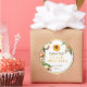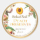 Beautifully designed label with vintage peach illustrations and blossoms and PEACH PRESERVES written in a decorative metallic gold font. Metallic gold gradient border.