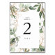 Gold Botanical Eucalyptus Elegant Greenery Moss Table Number