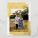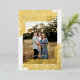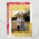 Beautiful hand drawn gold botanicals Christmas Holiday Photo Card design with a red graphic on the back with a snowflake pattern in red and white. Happiest Holidays, white and gold illustration on front.