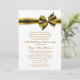 Elegant black and gold ribbon 50th wedding anniversary party invitation template. This pretty black and gold 50th wedding anniversary party invitation is easily customised for your event by simply choosing the "Customise it!" button to begin adding your event details, font style, font size & colour, and wording. Please note - all of the stickers, cards and invitation designs you will find on Zazzle are printed graphics with no actual jewels, bows, raised, embossed, or added parts or pieces.