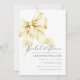This invitation blends modern luxury and timeless romance, making it the perfect prelude to a special bridal shower. The centerpiece of the design is a stunning gold bow, symbolising the wrapping of precious moments and the beginning of a new chapter. Its shimmering gold tone adds a touch of elegance and sophistication, drawing attention to the joyful event to come. Paired with elegant script typography, the invitation balances simplicity with grace, making it ideal for brides who appreciate classic beauty with a modern twist.