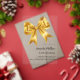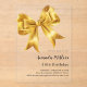 A clear, transparent background, decorated with a large golden bow. Personalise and add a name and party details.