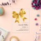 A clear, transparent background, decorated with a large golden bow. Personalise and add a name and party details.