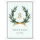 Gold Bow & Evergreen Pine Wreath Wedding Mint Table Number