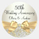 50th Wedding Anniversary Sticker. Elegant gold diamond bow & floral swirl design. Please note: All flat images! They do not have real jewels!