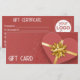 Shiny noble high quality holiday design featuring glamourous gold gift bow and ribbon on a red heart gift box and lush red background, decorated with red hearts confetti. This elegant and lovely gift certificate is perfect for your small business or to gift friends and family, especially for Valentine's Day.