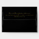 This elegant black envelope has a unique faux gold foil bracket shape address area on the front, and matching gold texture on the inside that looks like an envelope liner and is a pretty way to customise new year's and take holiday party invitations, birthday or graduation party, and wedding invitations to the next level! Type in your return address, then hand write your mailing addresses in the space provided once you receive them.