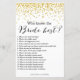 PRINTED Gold Confetti Bridal Shower Game -who knows bride best
