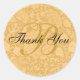 Gold Brocade Monogram Thank You Classic Round Sticker