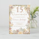 Romantic and elegant floral watercolor Quinceañera birthday party invitation with hand painted terracotta, yellow, brown and green flowers arrangement and modern and chic script calligraphy and gold frame. Add your photo at the back