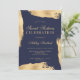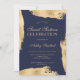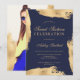 A modern, pretty chic and elegant yellow gold metallic foil abstract brushstroke on editable navy blue Sweet 16 birthday party invitation . Add your photo at the back.