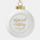 Gold Brush Script Married & Merry Wedding Ceramic Ball Christmas Ornament