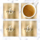 Gold Brushed Metal Black White Script Monogram Glass Coaster