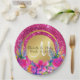 Gold Brushed Metal Glitter Monogram Name Paper Plate