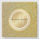 Gold Brushed Metal Glitter Monogram Name Stone Coaster