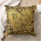 A pillow with a fancy golden heart with decorative swirls and shapes with the words "true Love knows no league" written in the centre in fancy script font. Set inside a circle with a gold border. The background is a classy marbled look in gold and tan.