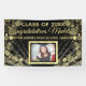 Celebrate the accomplishments of the boy or girl graduate by displaying a beautiful golden theme graduation Party Photo Banner, available for both indoor and outdoor uses. Decorate a high school or college graduation party for her, him, women or men with fancy black and gold bokeh decorations