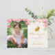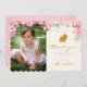 This is the perfect way to thank your guests for making your little bunny's birthday special. Hand painted watercolor flowers in shades of pink mingle with gold dots to frame the photo of your sweet girl. Gold bunny rests atop the thank you text completing this sweet card. Thank you card has matching birthday invitation available. Pink with white polka dots on the reverse.