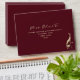 Simple, modern calligraphy, elegant burgundy wedding invitation 5x7 envelope with return address and gothic faux gold foil greyhound dog silhouette at the front with full guest address template.