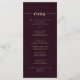 This gold burgundy minimalist calligraphy dinner menu card is perfect for a rustic wedding. The simple and elegant design features a gold classic and fancy script typography in a maroon background.