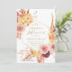 This bridal shower invitation features rustic watercolor flowers in terracotta, burgundy, burnt orange, yellow, blush with beige and brown pampas grass, and a gold hexagon frame. For more advanced customisation of this design, please click the "customise further" link. Matching items are also available.