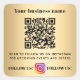 A stylish, classic faux gold background. Personalise and add your business name, your own qr code to your Instagram account and a text. Black text. With the text x2: Follow us!