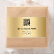 A faux gold looking background, black text. Personalise and add your comapny name, address and business website url/link to the QR code
