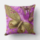 Gold Butterflies Pink Flowers Personalised Name Cushion