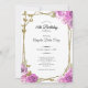 This elegant pink and gold 18th birthday debut invitation has pink roses and gold butterflies with a personalizable template to create your own message. Add your photo on the back to personalize the image. The invitation template is customizable in the listing editor and is also available as a digital download that's printable after you personalize it. This is a modern, blingy design that's still traditional enough for an elegant milestone birthday.