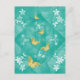 Gold butterflies and silver flowers on a textured teal mandala, a beautiful modern design vertical postcard.